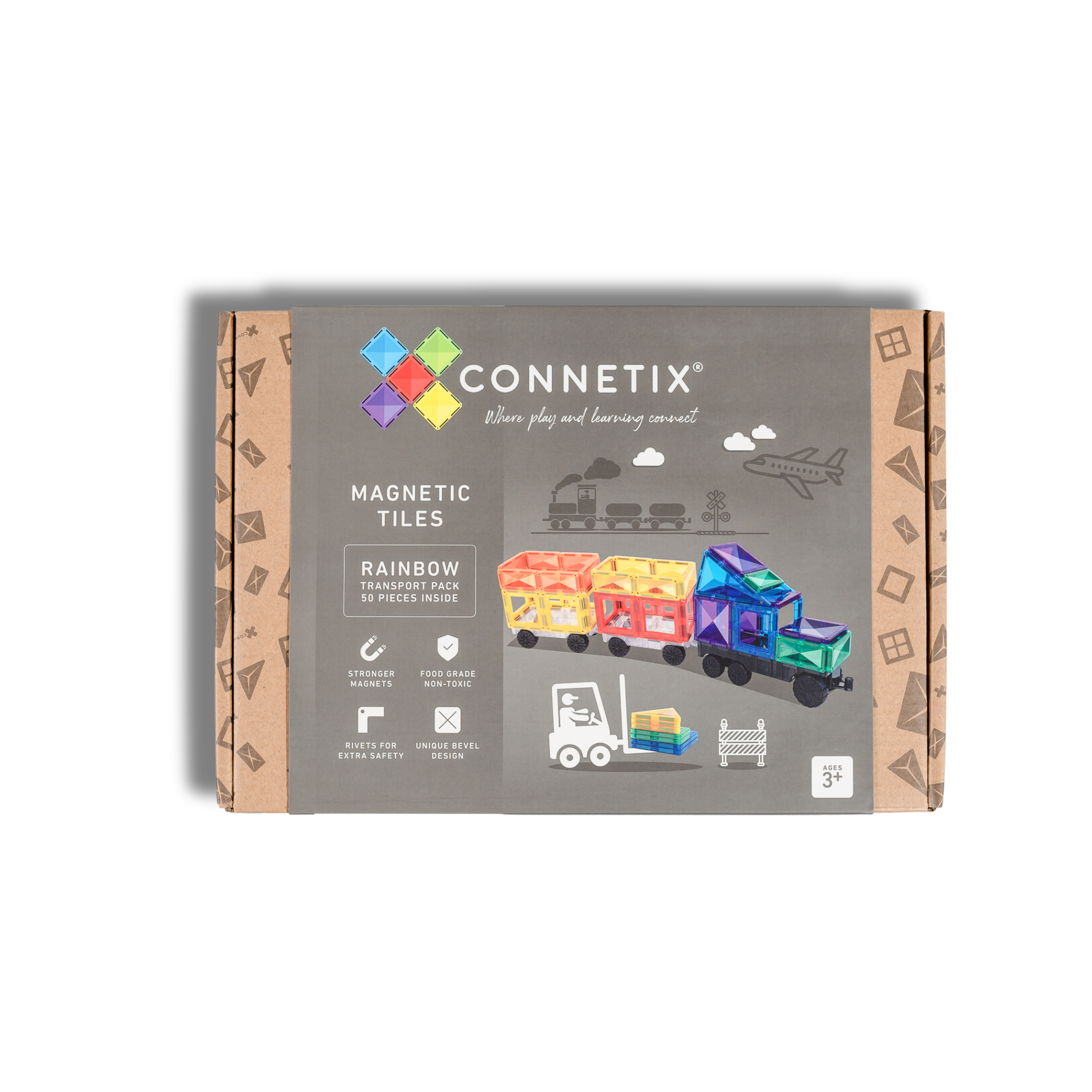 Fyrst komu farartækin, svo kom bílapakkinn og núna hefur Connetix toppað sig með langferðaútgáfu! Þrír bílagrunnar í einum pakka þar sem fyrsti svarti segulkubburinn frá Connetix er bílagrunnur með sex hjólum. Í pakkanum má einnig finna tvo glæra bílagrunna ásamt fullt af segulkubbum í öllum regnbogans litum.