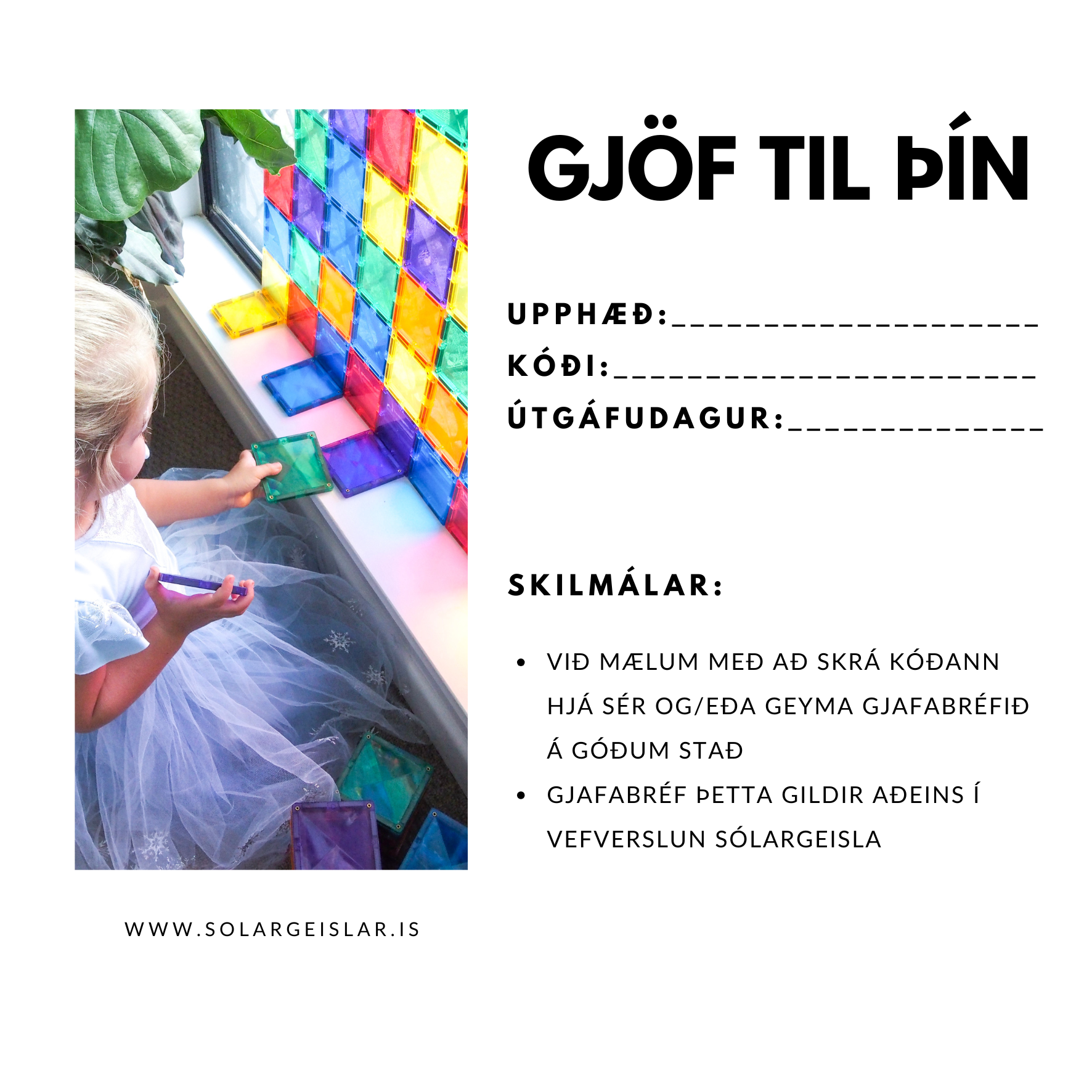 Stakt gjafabréf er 2.500kr með það í huga að hægt er að velja “mörg” sem eru sett saman í eitt gjafabréf. T.d. ef viðskiptavinur vill kaupa gjafabréf uppá 10.000kr er hægt að velja 4x gjafabréf og setja inn athugasemd í greiðsluferlinu.